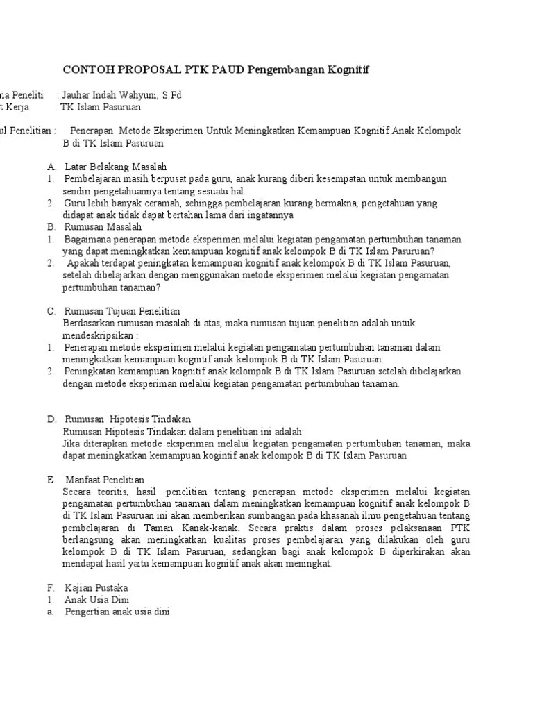 Contoh Proposal Eksperiment - Contoh Proposal Penelitian Eksperimen Pendidikan Anak Usia Dini Barisan Contoh : Sistematika, dan tata cara penulisan proposal penelitian, prosedur seleksi.